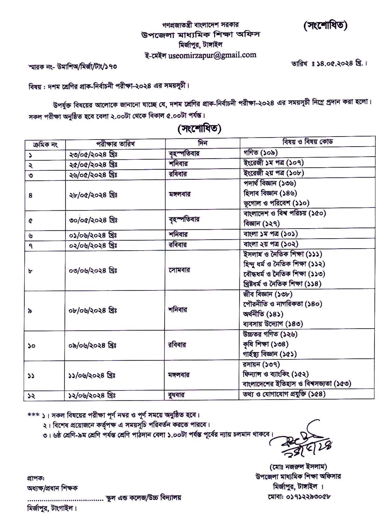 প্রাক নির্বাচনী পরীক্ষা- 2024 এর সময়সূচী