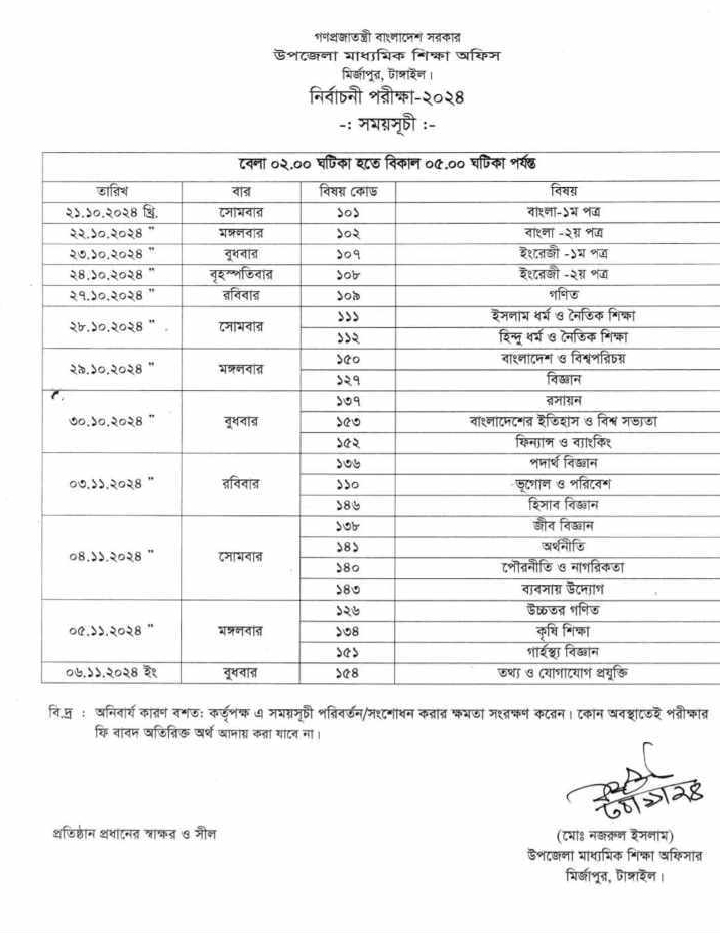 নির্বাচনী পরীক্ষা-২০২৪ এর সময়সূচি