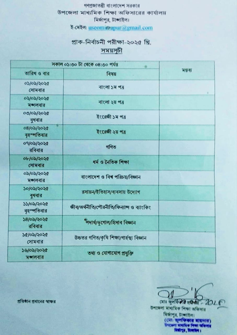 প্রাক-নির্বাচনী পরীক্ষা 2025 এর সময়সূচী