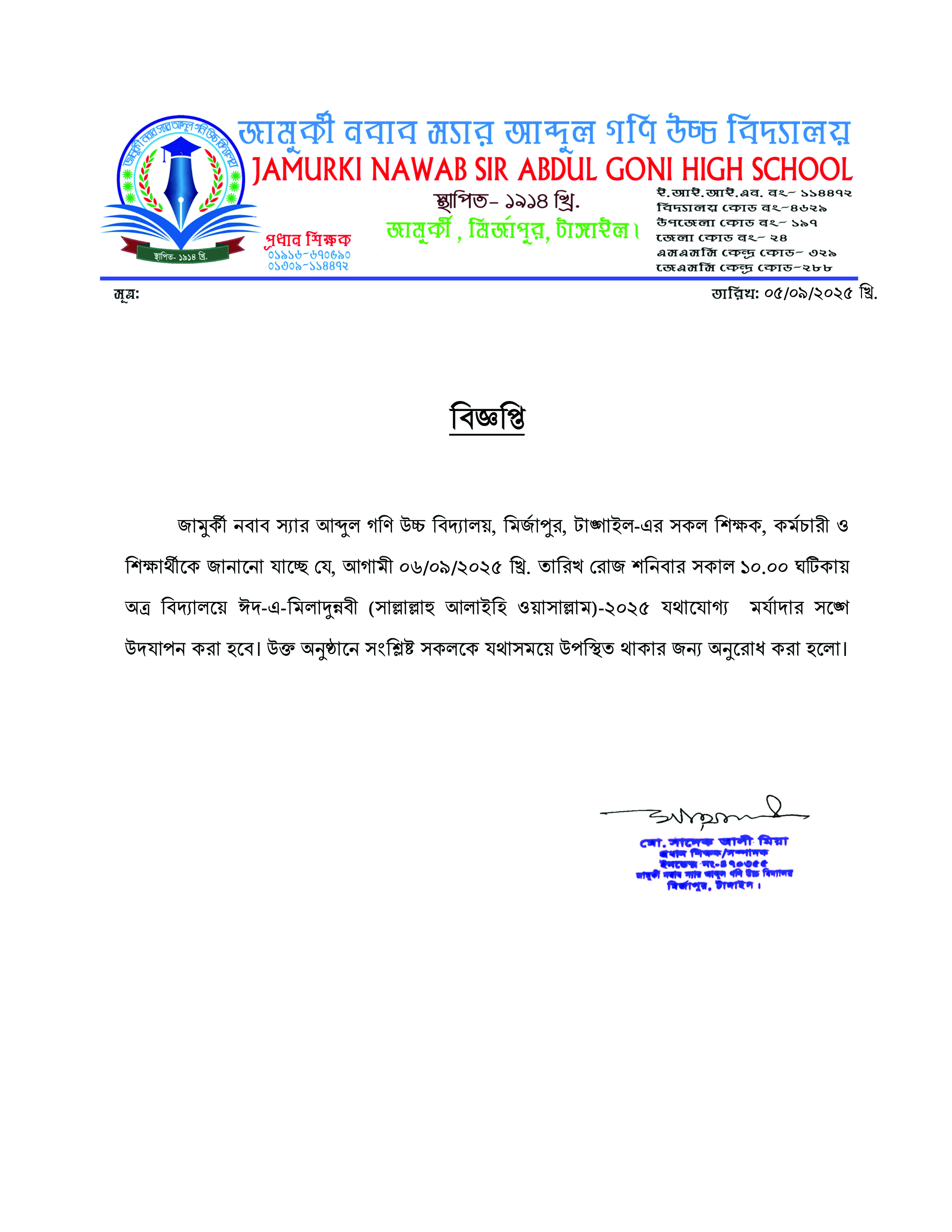 ঈদ-ই-মিলাদুন্নবী (সা:)-২০২৫ অনুষ্ঠানে সকলের উপস্থিতি সংক্রান্ত