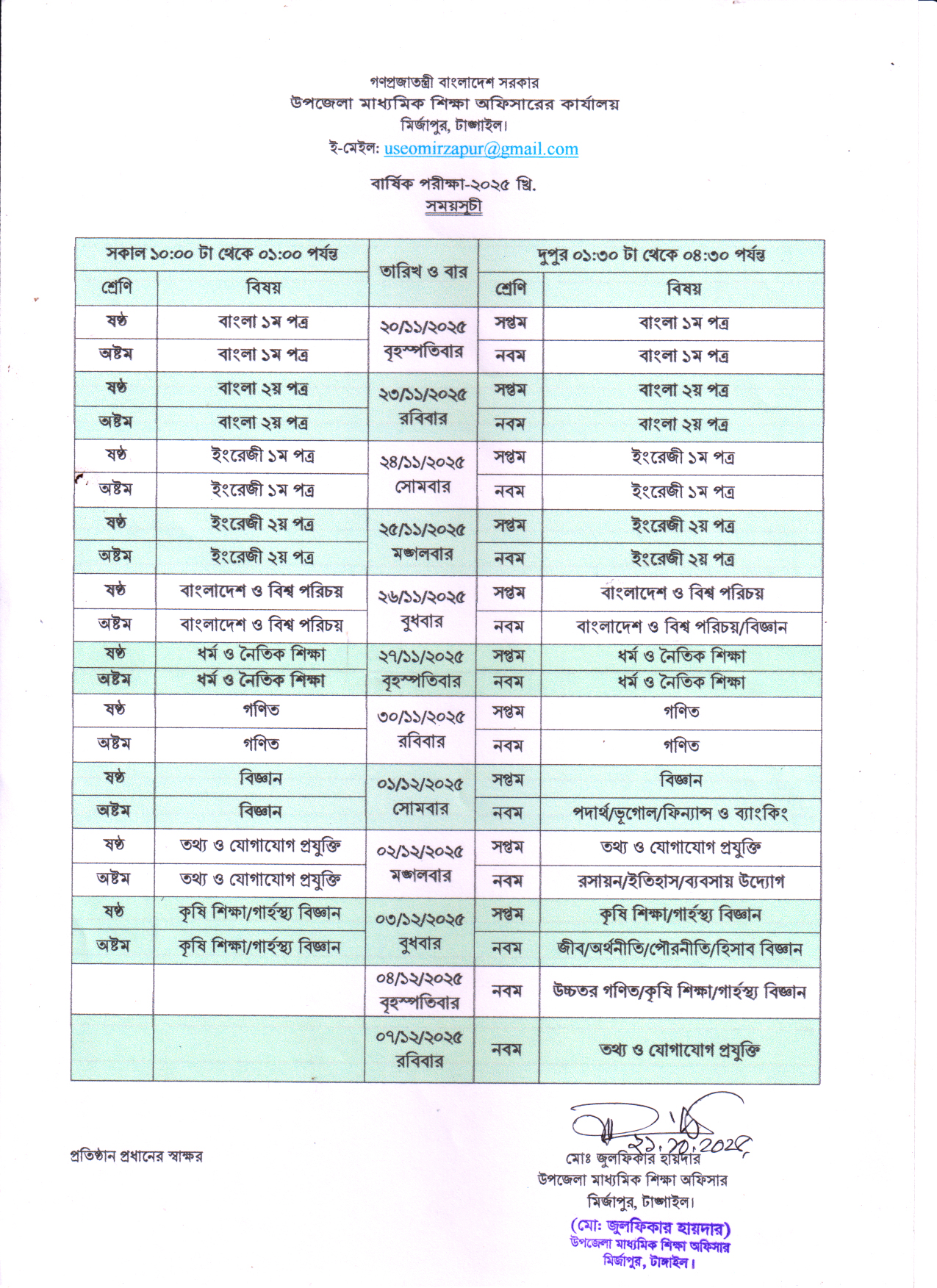 বার্ষিক পরীক্ষা-২০২৫ এর রুটিন