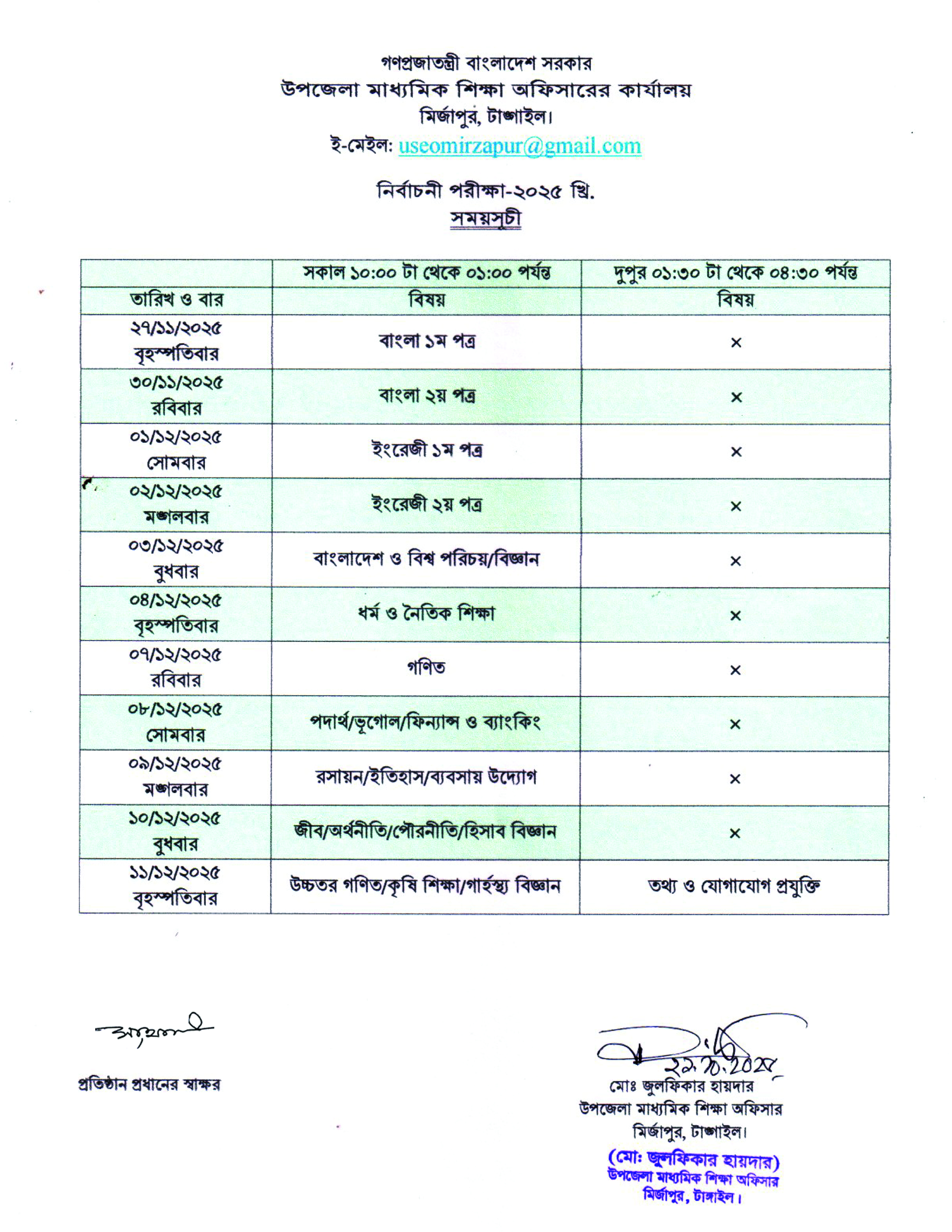 নির্বাচনী পরীক্ষা রুটিন-2025